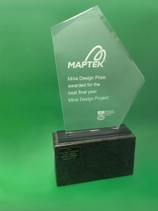 Maptek Technical Services Manager, Richard Buckley, was impressed with the group’s work in claiming the gong for Best Final Year Mine Design Project.
