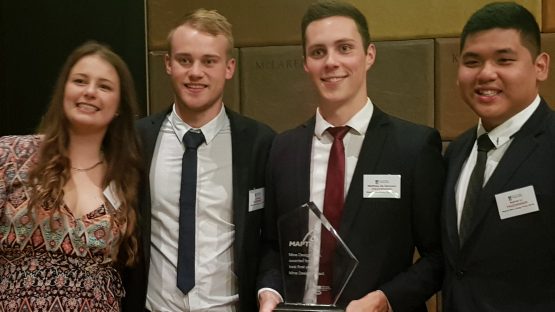 Fontae Franks, Jack Kent, Matthew De Gennaro and Kalvin Li received the gong and $1000 prize at the University of Adelaide Civil Engineering Annual Ball at the National Wine Centre on Friday, September 15.