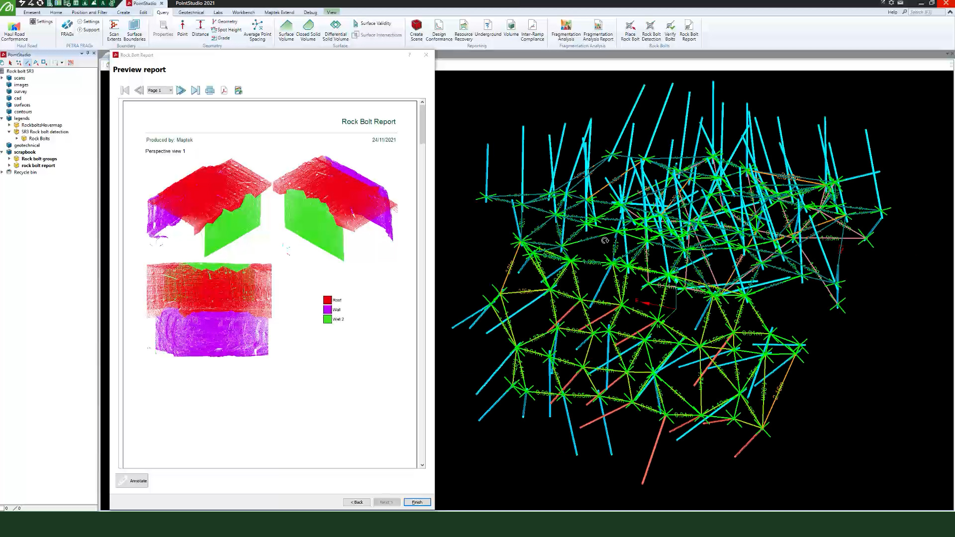 Функции отчетности и визуализации PointStudio для согласования распределения и эффективности анкерной крепи поддерживают лучшие решения маркшейдеров, инженеров-геотехников и руководства рудниками.