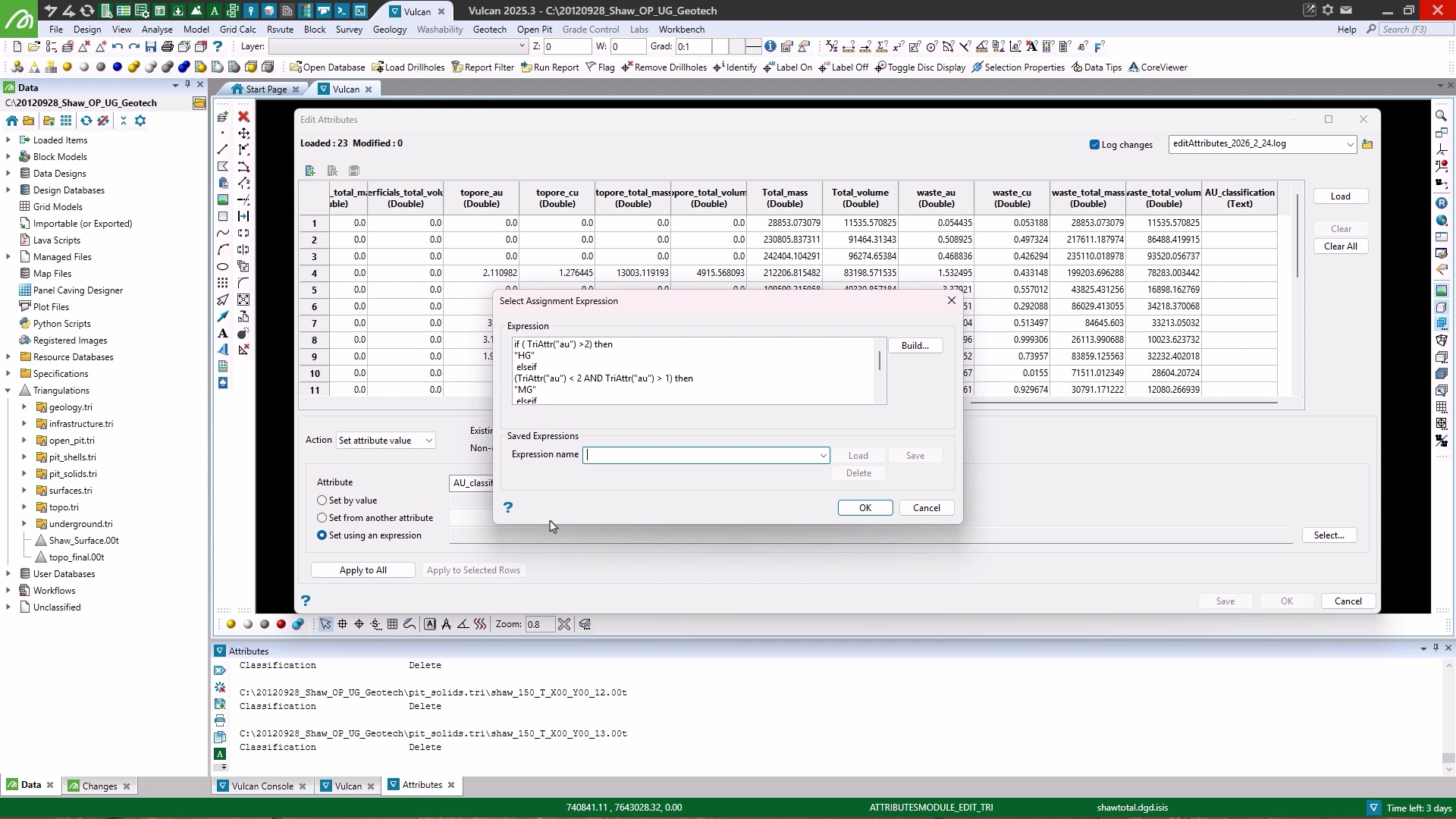 Learn to update attributes of multiple triangulations based in Vulcan.